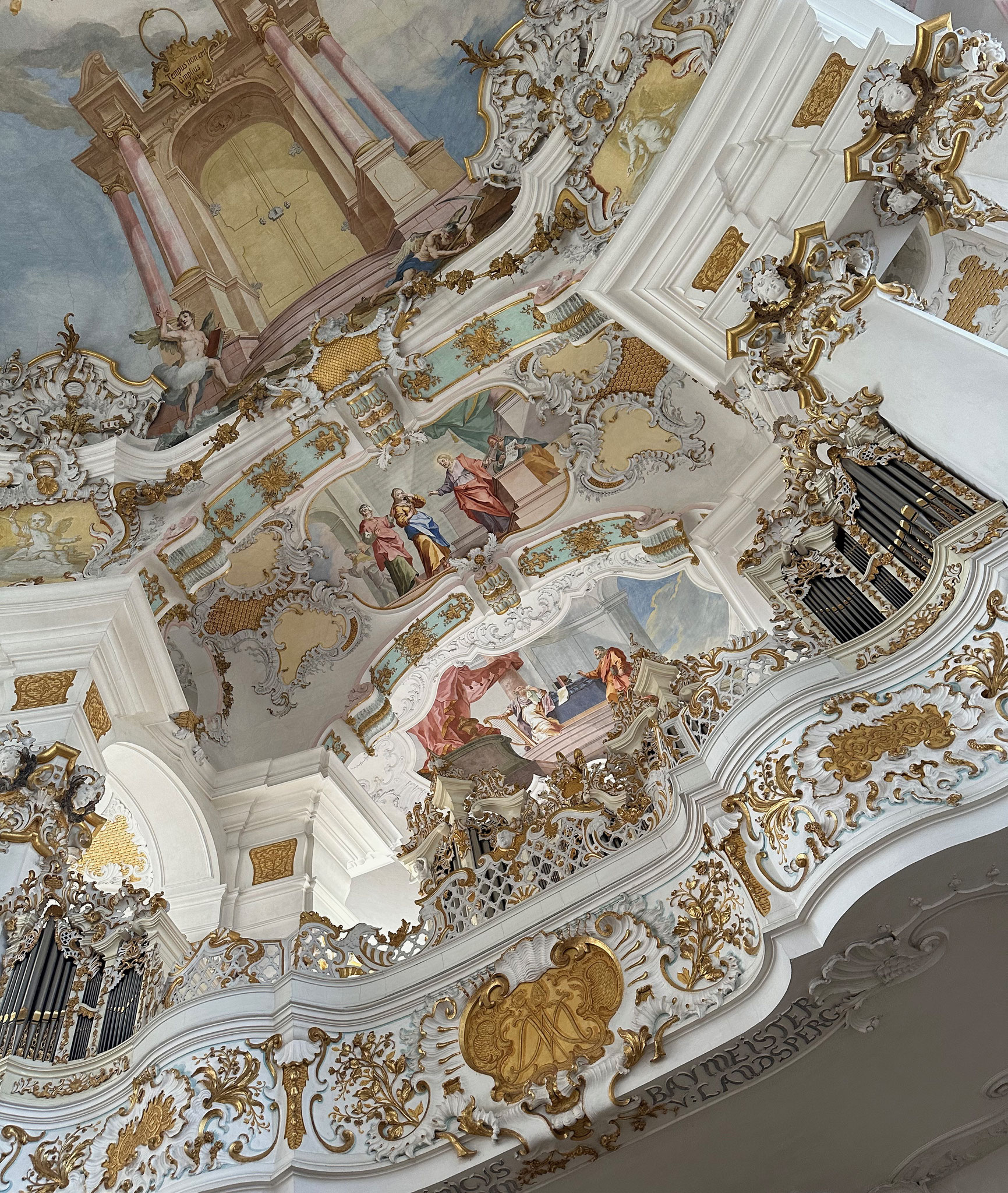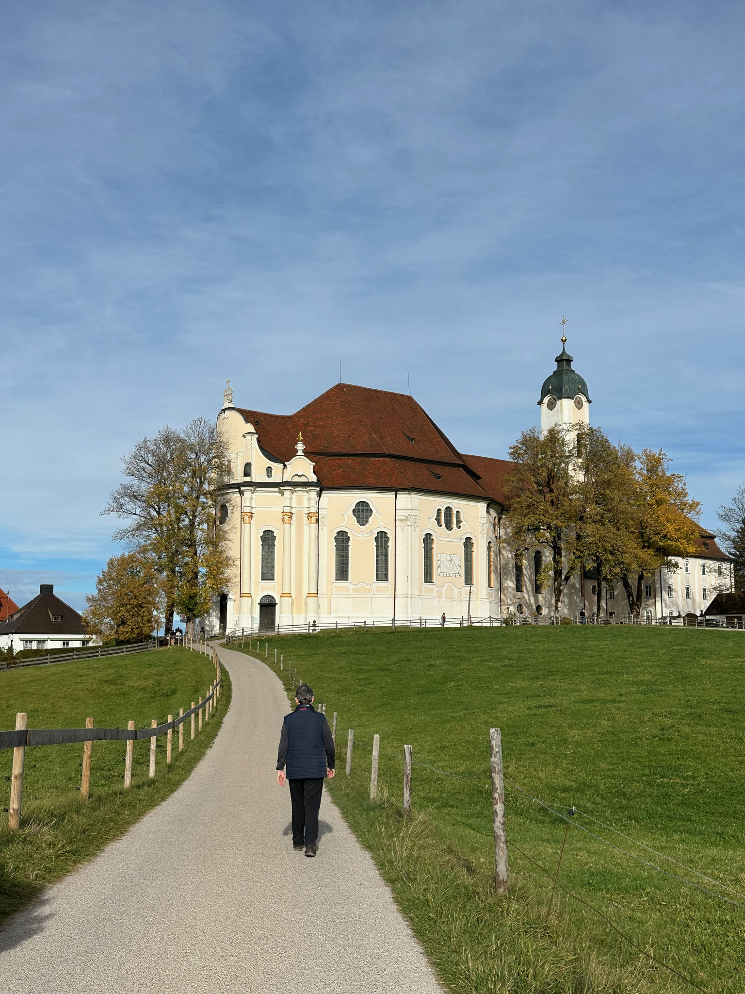 Das Wetter trübte sich ein bisschen ein, dass hielt mich aber nicht davon ab, als nächstes zur Wieskirche zu fahren. Der Parkplatz ist gebührenpflichtig, hat aber keine Park-App mit der ich bezahlen konnte. Der Automat nahm nur Münzgeld. Die Gastronomie war leider nicht auf die Menge der Touristen ausgelegt, die bei noch gutem Wetter die Wieskirche genießen wollten.