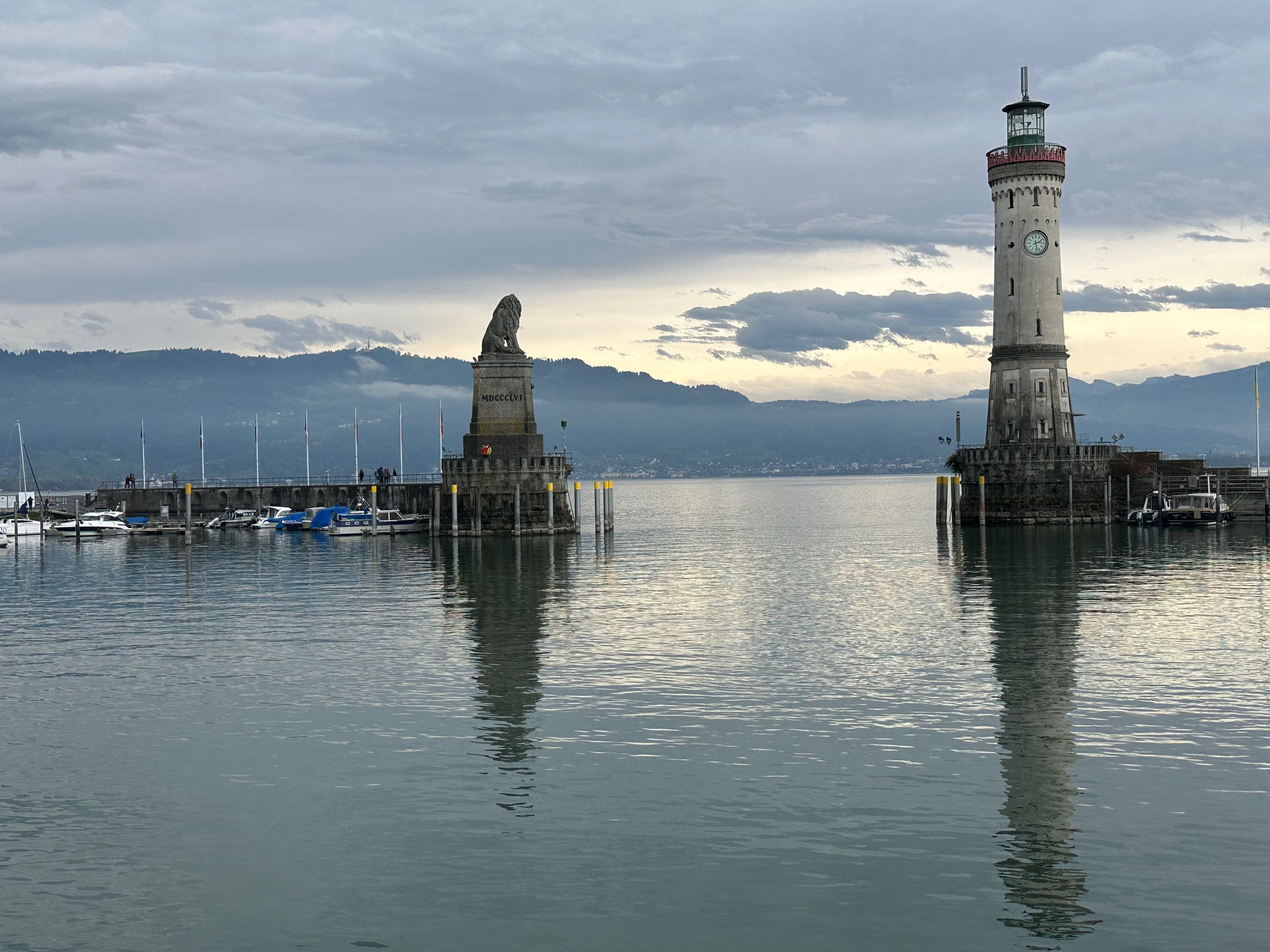 Der Bodensee grau in grau. Aber Lindau war trotzdem schön. Die Stadt bereitete sich auf einen Herbstmarkt und die anschließende Weihnachtszeit vor. Die Zeit vor der Fahrt nach Hause reichte noch für einen leckeren Marillenstrudel im Corner Café mit direktem Blick auf den Bodensee. Auch der andere Kuchen im Corner Café sah sehr verlockend aus. Die Parkzeit reichte dann auch noch für einen kleinen Spaziergang durch die Innenstadt. Es gab viele individuelle Geschäfte in der Fussgängerzone. War alles schön anzusehen, trotz grauem Wetter.